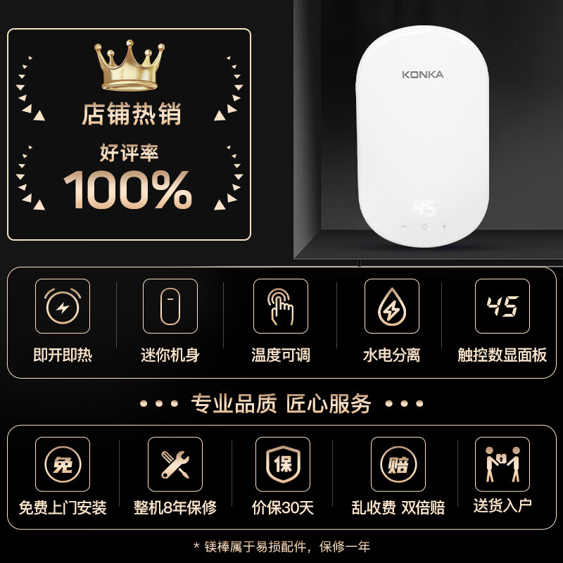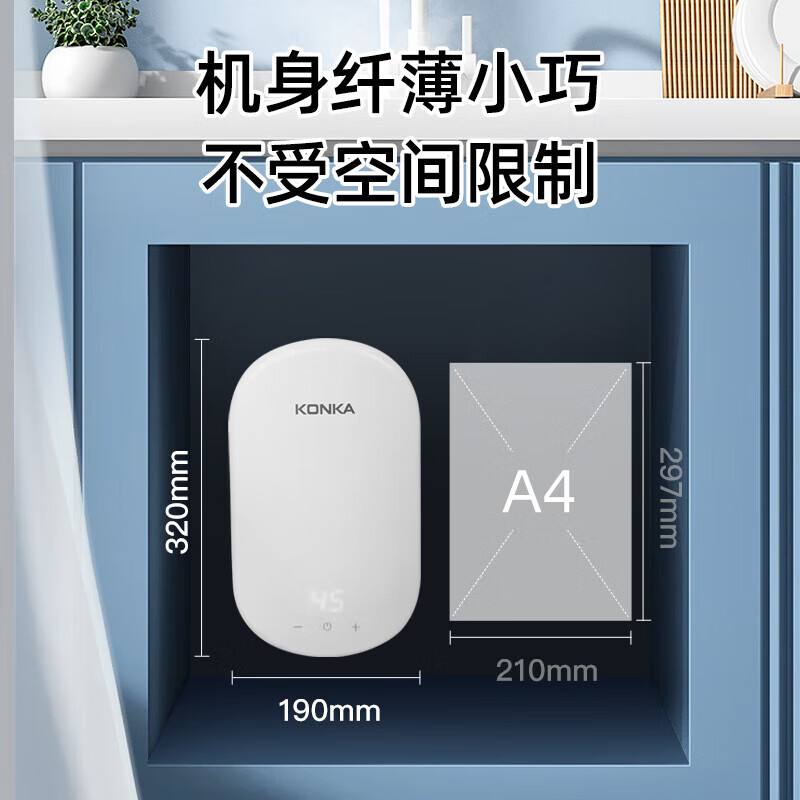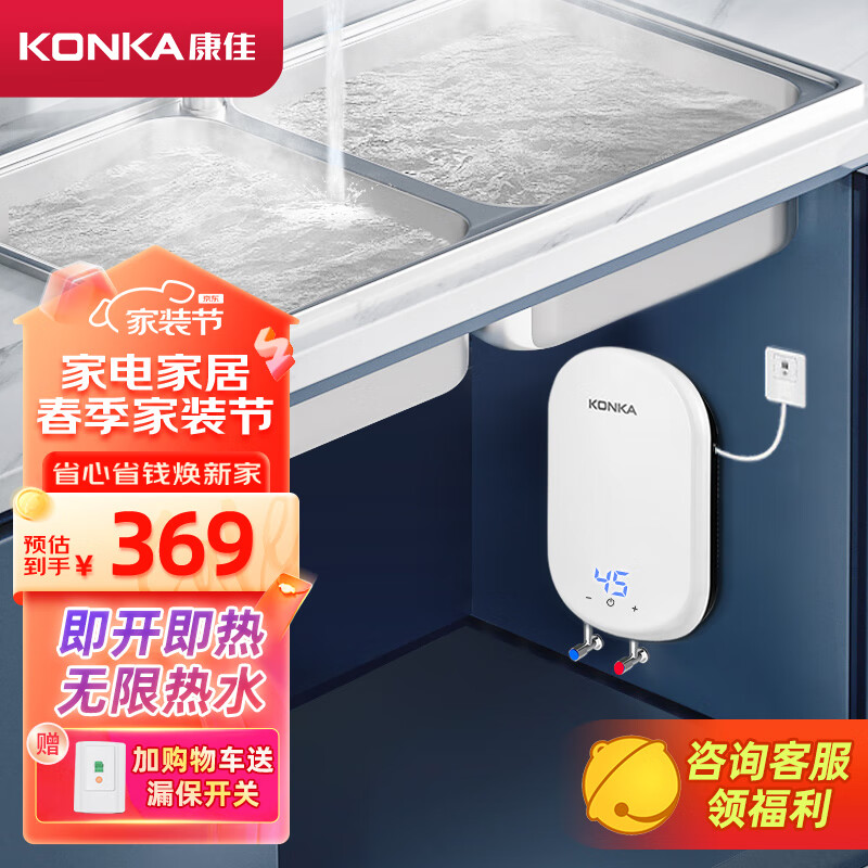 康佳(KONKA)即热式电热水器家用免储水 5500W即开即热小厨宝 恒温不限水量 纤薄小巧厨房热水宝 DSZF-JR06价格:369.00元!