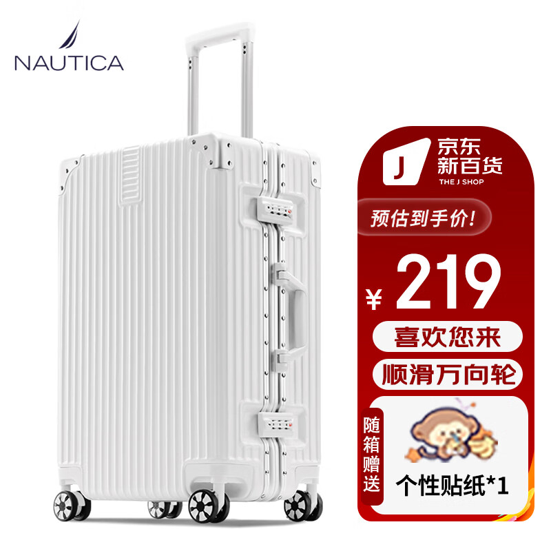 NAUTICA行李箱男铝框拉杆箱万向轮女士大容量出行旅行箱26英寸密码皮箱价格:219.00元!