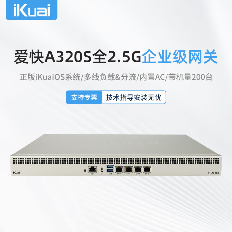 爱快(iKuai)全2.5G企业路由器 多WAN/多LAN口COM口 一键认证/VPN/策略路由/日志审计 19英寸带机200台A320S价格:1699.00元!