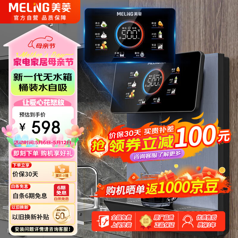 美菱(MeiLing)管线机 家用净水器伴侣 即热即饮 六段控温 全通量匹配 高温杀菌 壁挂式直饮机 速热饮水机MY-G518价格:699.00元!