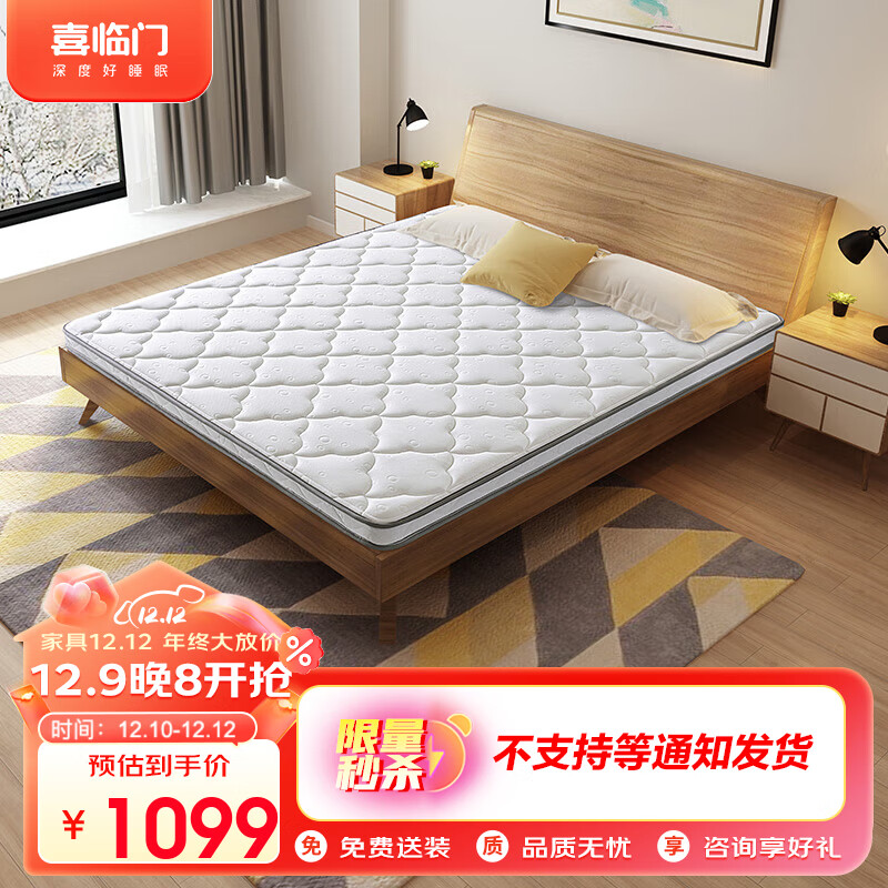 喜临门抑菌防螨床垫 青少年/老人棕垫 3D椰棕薄垫 珍珠白P2S 1.5x2米价格:1099.00元!