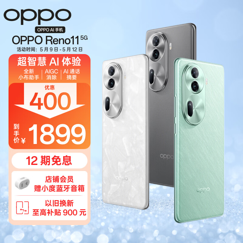 OPPO Reno11 5000万单反级人像三摄 天玑8200 旗舰芯 长续航 8GB+256GB 月光宝石 学生5G拍照 AI手机价格:2299.00元!