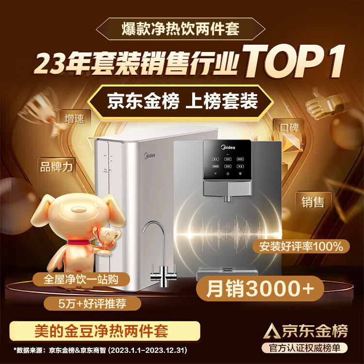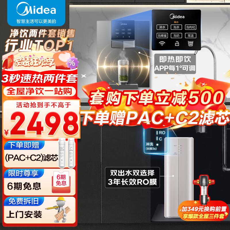 美的(Midea)净水器家用净水机厨下式全屋母婴直饮机麒麟400G加热直饮一体机RO反渗透过滤器大通量金豆纯水机 【人气净热套装】大流量净水器+TOP即热管线机价格:2998.00元!