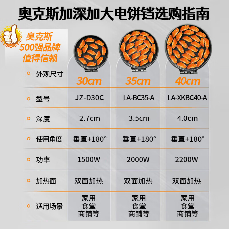 奥克斯(AUX)电饼铛 双面加热家庭用加深大号商用煎饼锅电煎锅早餐机烙饼机蛋饼机40大尺寸 LA-XKBC40-A价格:289.00元!
