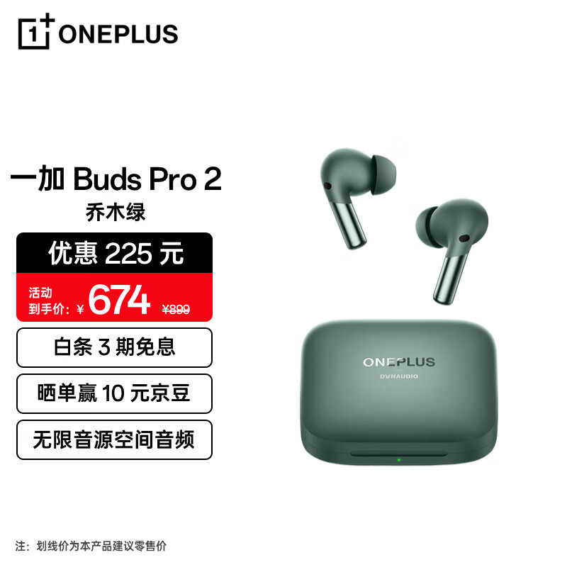 一加Buds Pro 2 真无线入耳式主动降噪蓝牙耳机 音乐运动游戏耳机 通用oppo小米苹果华为手机 乔木绿价格:674.00元!