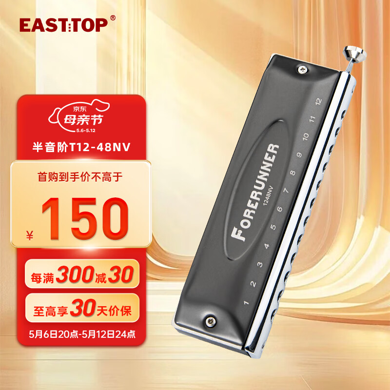 东方鼎(EAST TOP)半音阶口琴12孔48音 先行者T12-48NV 初学推荐 无膜不粘膜价格:178.00元!