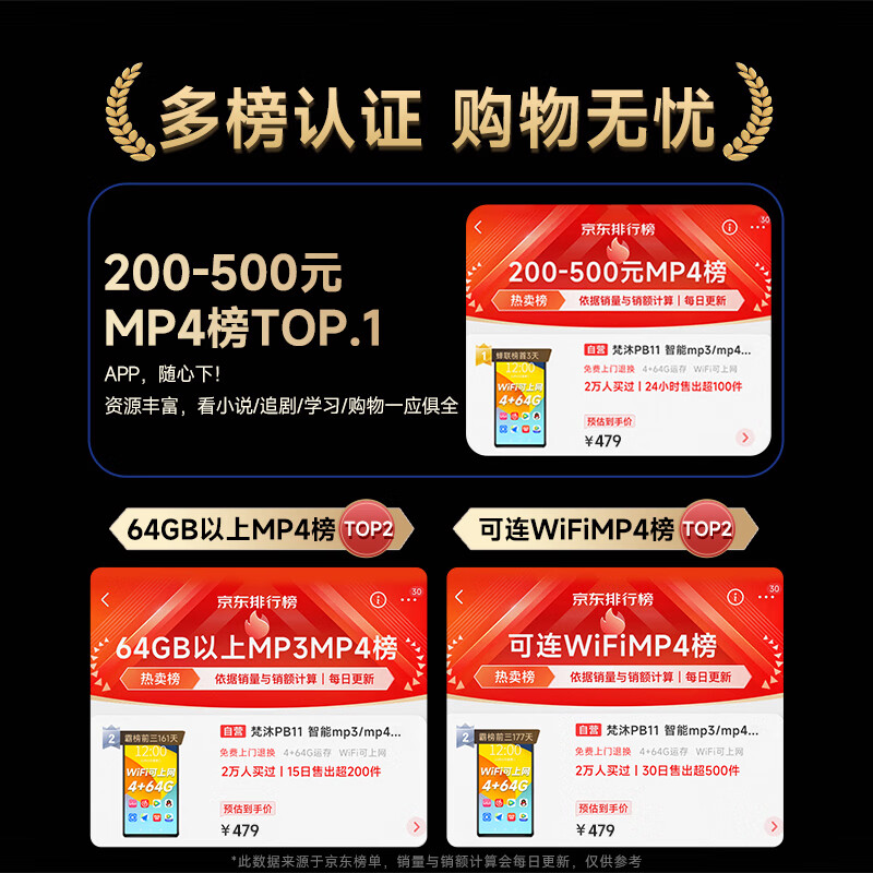 梵沐PB11 智能mp3/mp4音乐播放器WiFi可上网 4+64G运存 安卓9.0 mp5在线听歌 高清视频触屏看小说价格:479.00元!