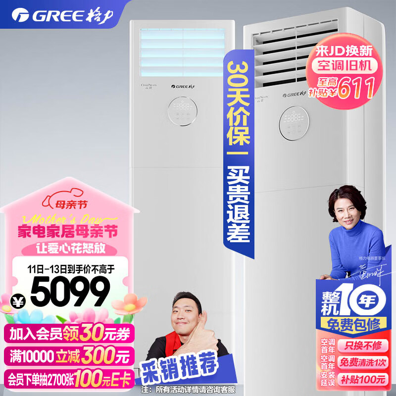 格力(GREE)2匹 云佳 新能效 变频 快速冷暖 自清洁 客厅空调立式空调柜机KFR-50LW/NhGh3B价格:5099.00元!