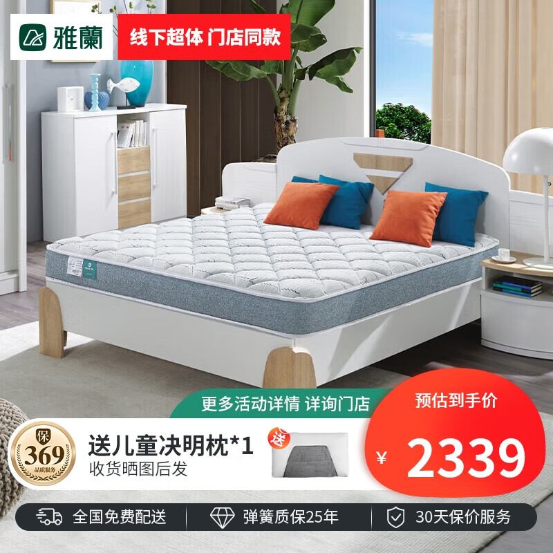 雅兰抑菌面料乳胶黄麻床垫 独袋弹簧er童床垫 蘭精灵 1.8*2米 超体价格:3339.00元!