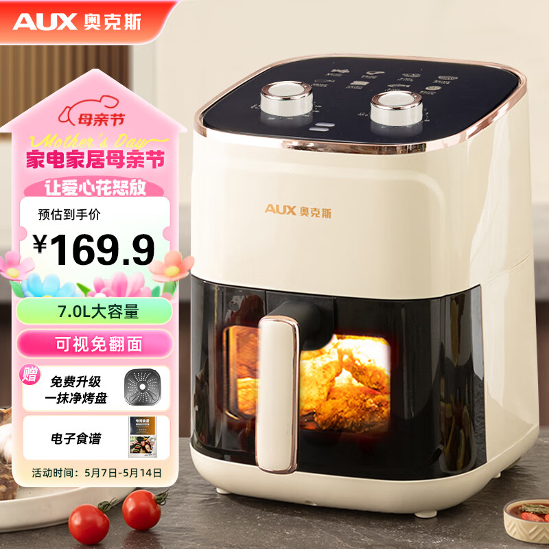 奥克斯(AUX)空气炸锅家用可视7L大容量精准定时无油烟电炸锅低脂不沾煎炸锅大功率烤箱薯条机价格:169.90元!