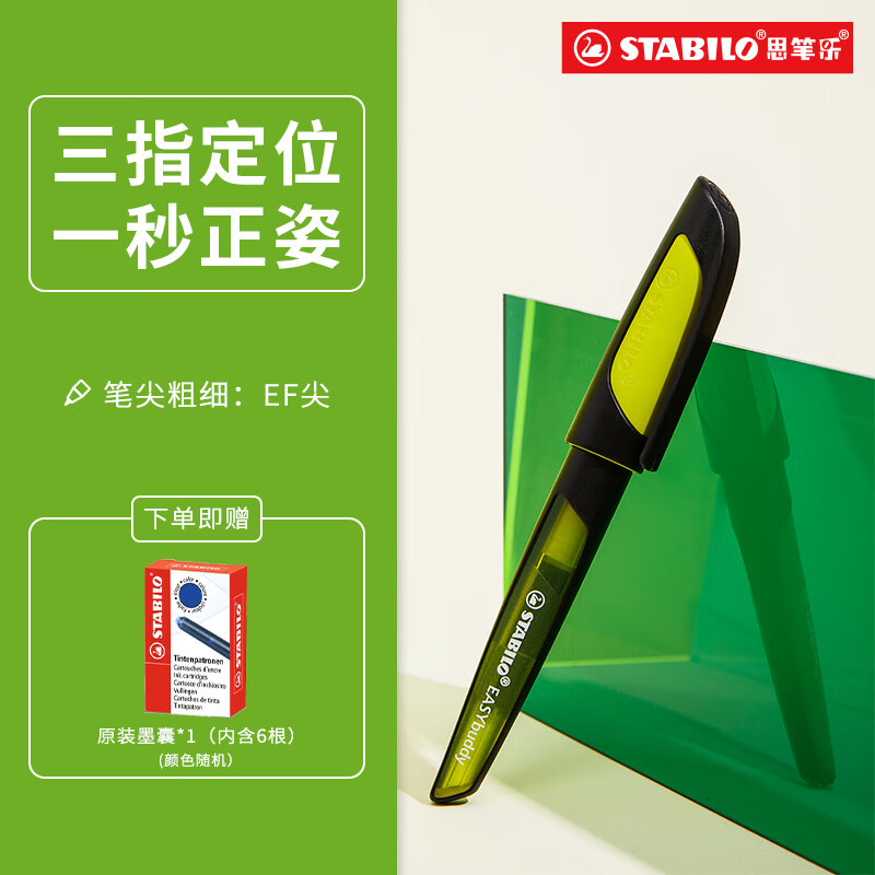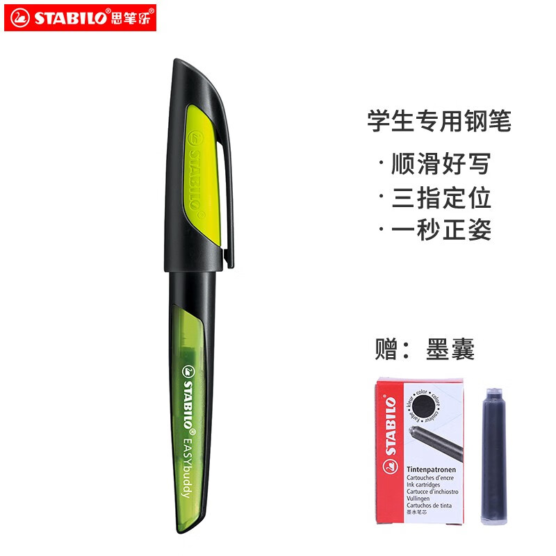 思笔乐(STABILO)小学生钢笔 矫正握姿 练字钢笔0.5mmEF尖 书法作业专用开学礼物 黑黄色 5034/1(含墨囊)价格:98.10元!