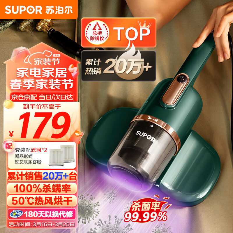 苏泊尔(SUPOR)除螨仪手持床铺除螨机家用吸尘 双拍打紫外线杀菌 VCM16A(复古绿)+滤芯2只【套装】价格:179.00元!