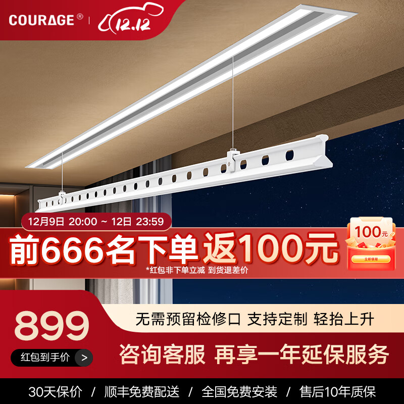 卡瑞琪(COURAGE)电动晾衣架隐形吊顶阳台家用隐藏式晾衣架多功能升降薄晒衣架 2米价格:2099.00元!