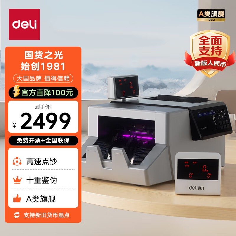 得力点钞机 验钞点钞机 验钞支持新版人民币 收银专用家用商用点钞机 A类旗舰多功能点钞机2126价格:2499.00元!