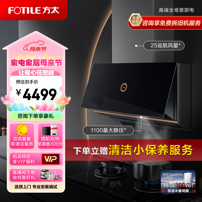 方太(FOTILE) 抽油烟机 欧式侧吸一体抽排油烟机 25大风量 屏 挥手智控 集成烹饪中心 A-MAX油烟机P1A.i价格:4499.00元!
