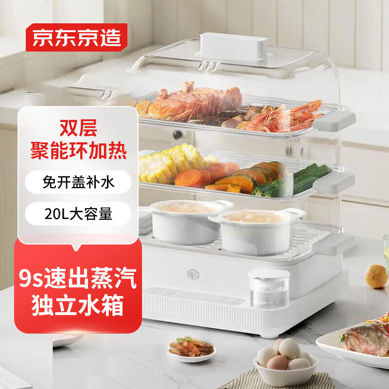 京东京造 20L大容量电蒸锅 家用多功能锅电蒸箱多层蒸汽锅多用途锅不锈钢蒸架 升级补水 生日礼物女价格:209.00元!