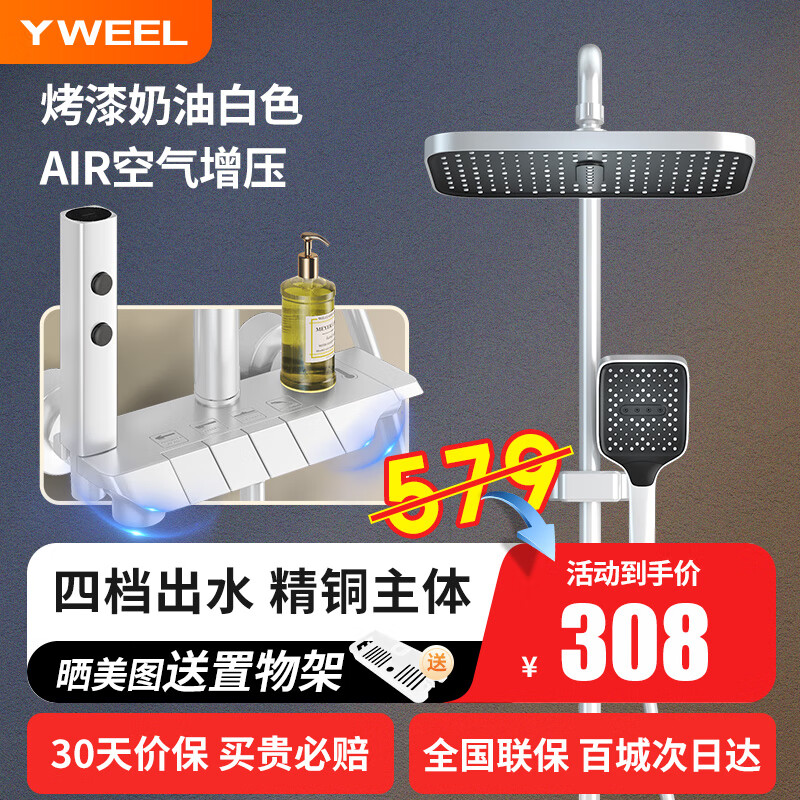 YWEEL淋浴花洒套装枪灰色智能数显增压花洒全套沐浴家用淋雨器手持喷头价格:308.00元!