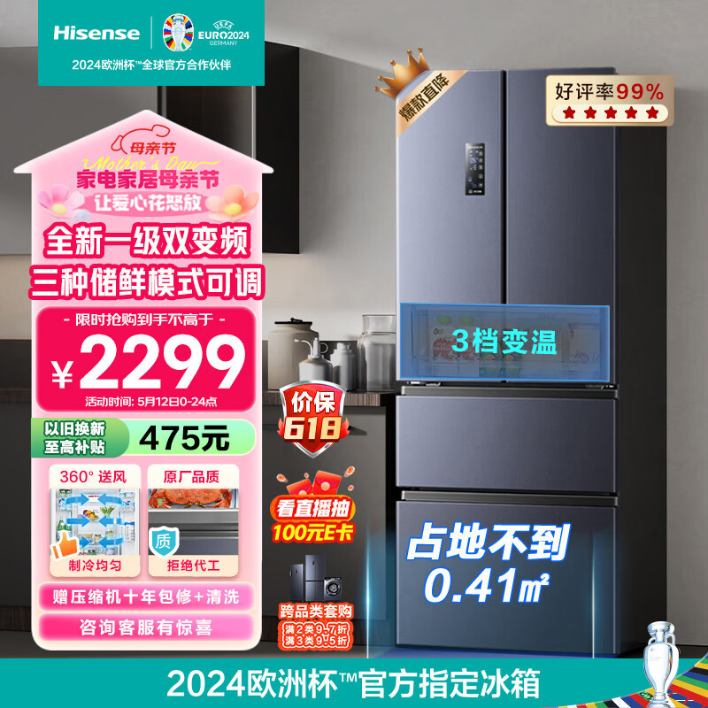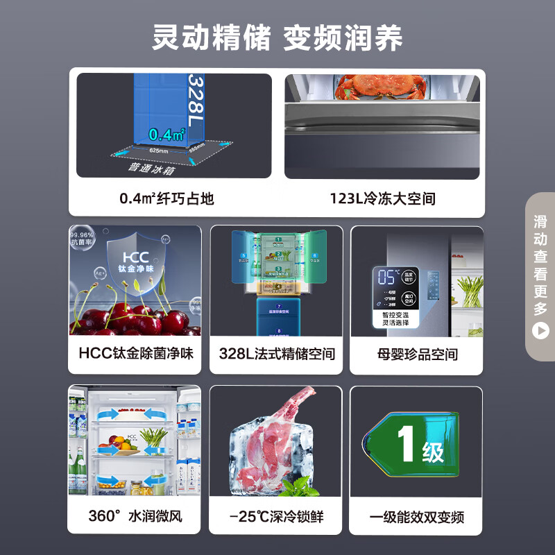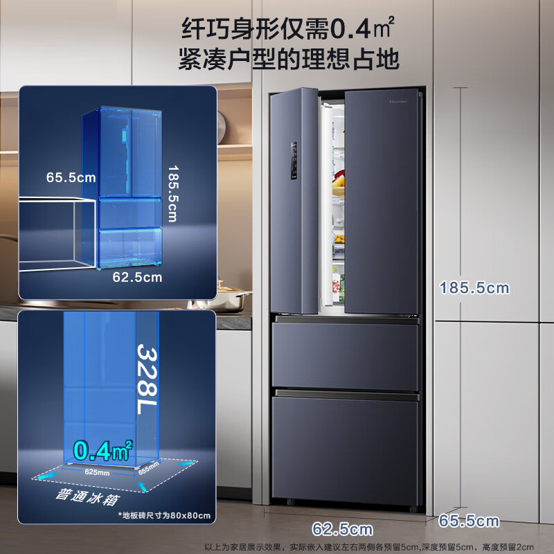 海信(Hisense)四开门冰箱法式328升无霜冰箱一级能效双变频超薄家用电冰箱BCD-328WNK1DPT除菌净味小占地价格:2499.00元!