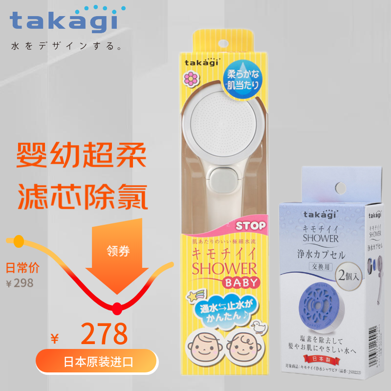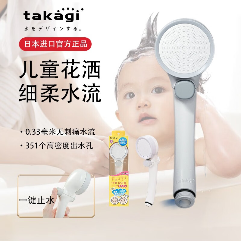 takagi儿童花洒超柔淋浴喷头美肤莲蓬头日本进口婴儿洗澡洗头除氯新生儿 除氯净化套装(花洒+2滤芯)价格:298.00元!