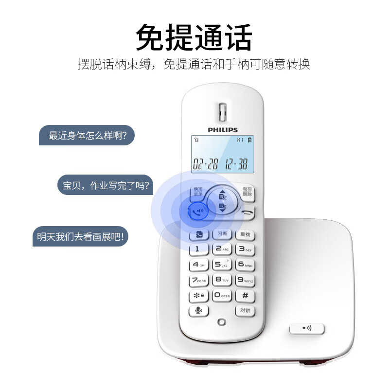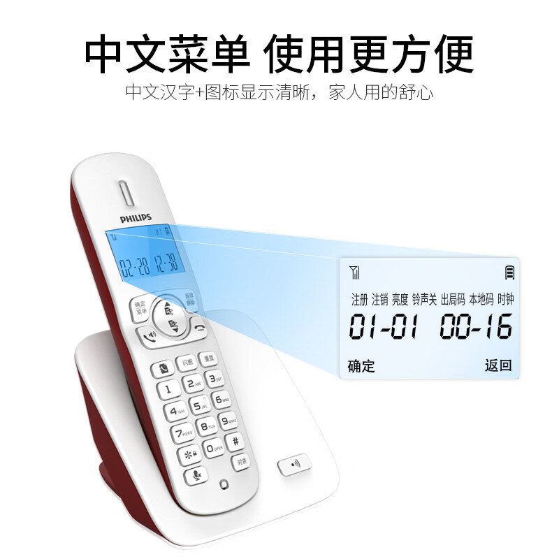 飞利浦(PHILIPS)无绳电话机 无线座机 子母机 办公家用 屏幕白色背光 持久待机 DCTG186红色价格:169.00元!