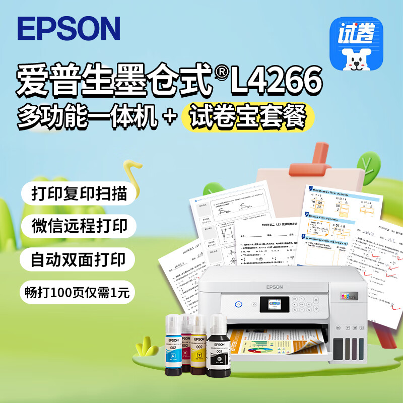 爱普生(EPSON) 墨仓式 L4266多功能一体机+试卷宝套装(名校试卷,答案分析,错题整理)价格:1599.00元!