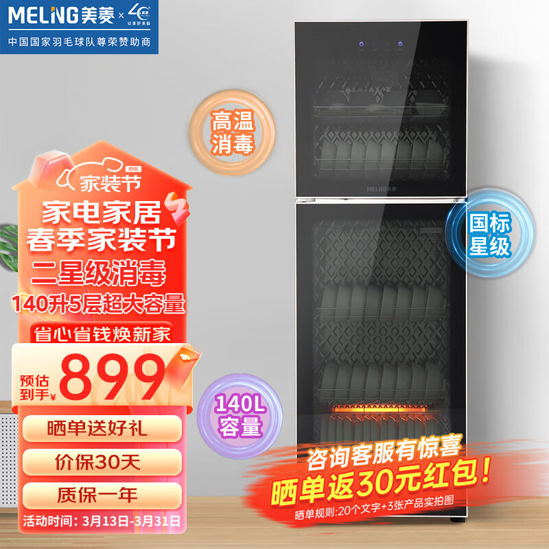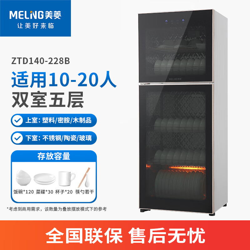 美菱(MeiLing)消毒柜家用 立式消毒碗柜 大容量 商用二消毒柜 双门台式餐具厨房碗筷消毒柜ZTD140-228B价格:899.00元!