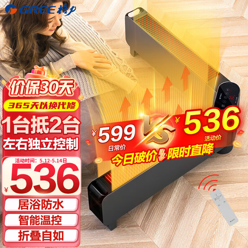 格力(GREE)折叠踢脚线取暖器家用大面积电暖器遥控电暖气片IPX4级防水移动地暖浴室干衣暖风机 1.5米折叠踢脚线NDJD-X6021B价格:525.00元!