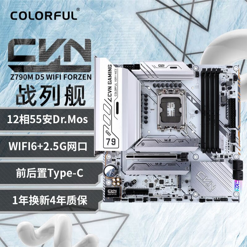 七彩虹(Colorful)CVN Z790M FROZEN D5 V20 战列舰 DDR5主板 支持13700K/13600K(Intel Z790/LGA 1700)价格:1299.00元!