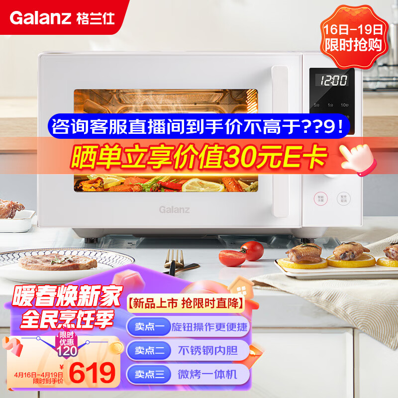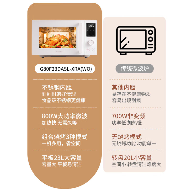 格兰仕(Galanz)不锈钢旋钮微波炉烤箱一体机800W速热光波炉家用23L平板易清洁G80F23DASL-XRA(W0)价格:619.00元!