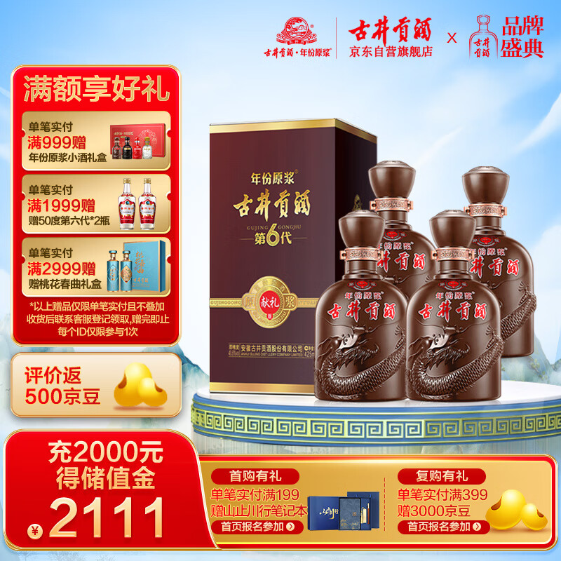 古井贡酒年份原浆 献礼版 浓香型白酒 40.6度425ml*4瓶 整箱装价格:441.18元!