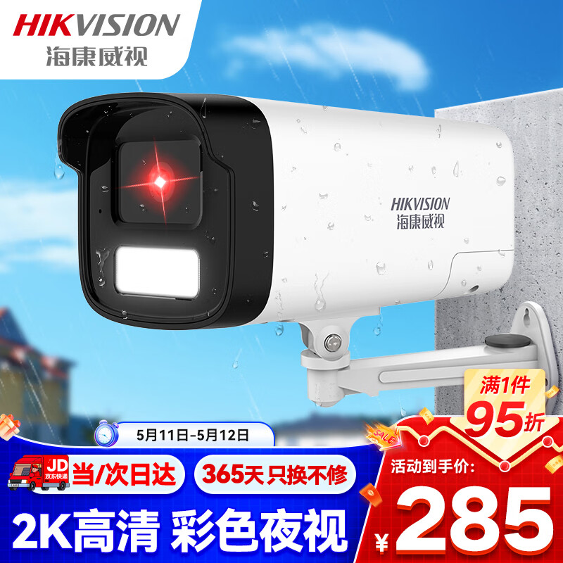 HIKVISION海康威视监控摄像头400万2K高清全彩夜视语音对讲户外防尘防水手机远程监控器B14HV3-LT 4MM价格:301.00元!