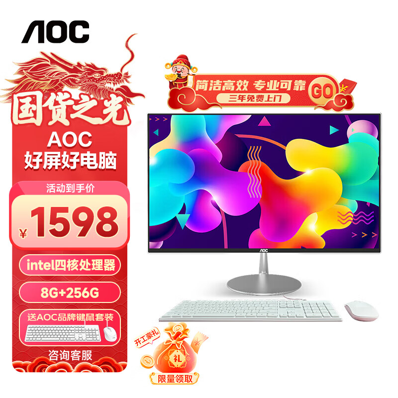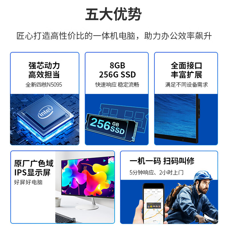 AOC 美人鱼734 23.8英寸高清办公一体机电脑台式主机(11代N5095 8G 256GSSD 双频WiFi 3年上门)价格:1598.00元!
