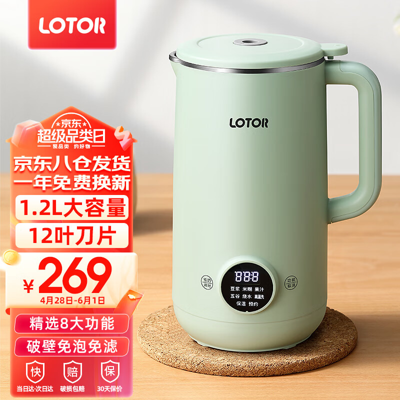 小浣熊豆浆机迷你破壁机1-2人家用小型全自动免滤免洗炸米糊榨汁杯搅拌婴儿辅食机3人4 1.2L绿色升级款价格:309.00元!