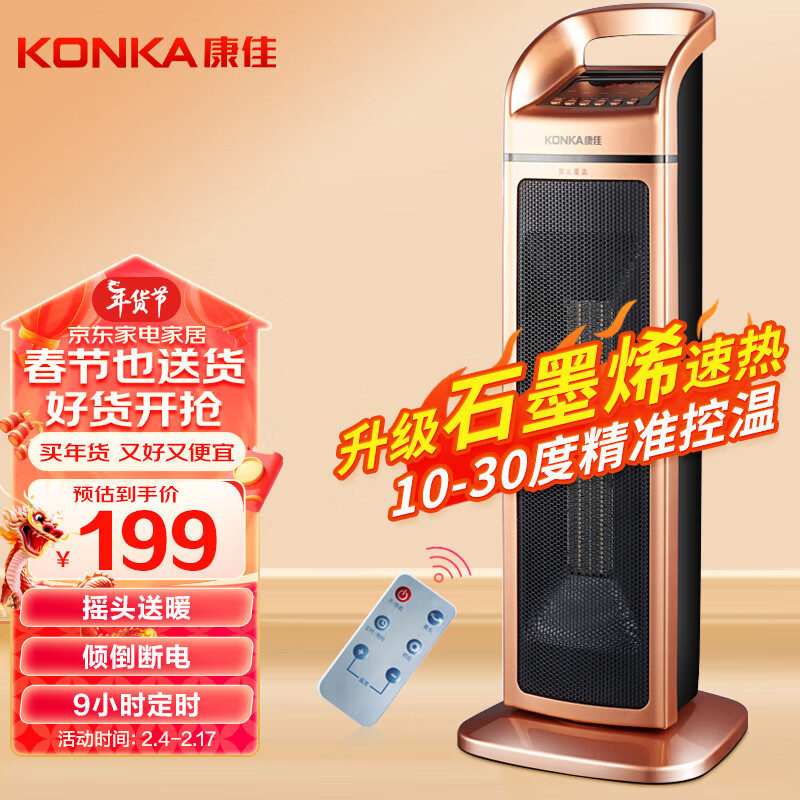 康佳(KONKA)取暖器家用/电暖器/塔式暖风机 暖气/电热 遥控定时 可摇头KH-NFJ27R价格:199.00元!