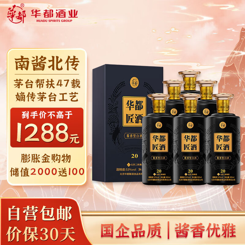 华都匠酒20 酱香型白酒 53度500ml*6整箱装 大曲坤沙 送礼佳品价格:1688.00元!
