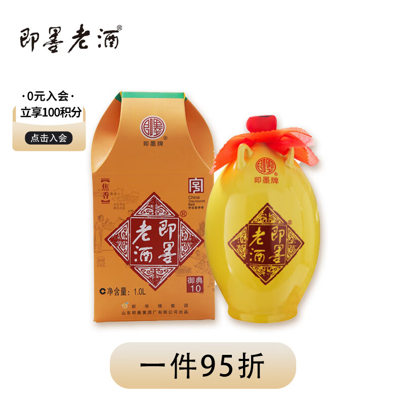 即墨老酒 御典十年陈 甜型 北方黄酒 1L 单坛装价格:129.00元!