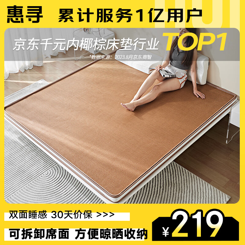 惠寻 京东自有品牌 凉席藤席椰棕床垫双面硬棕垫5cm 0.9*2米价格:219.00元!