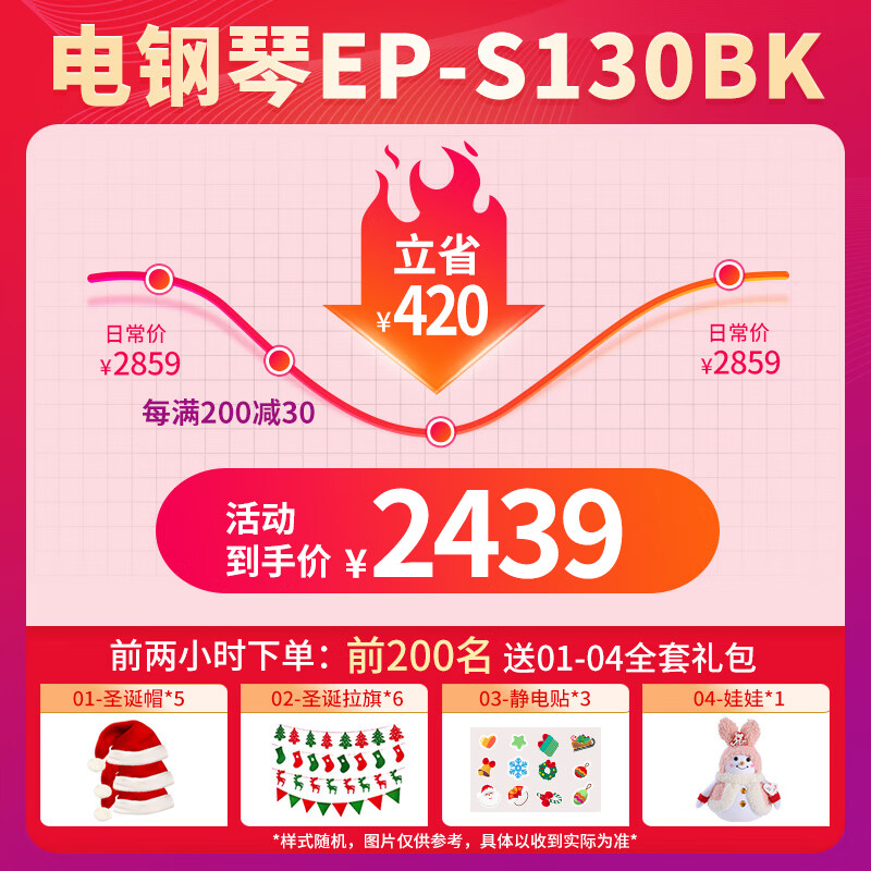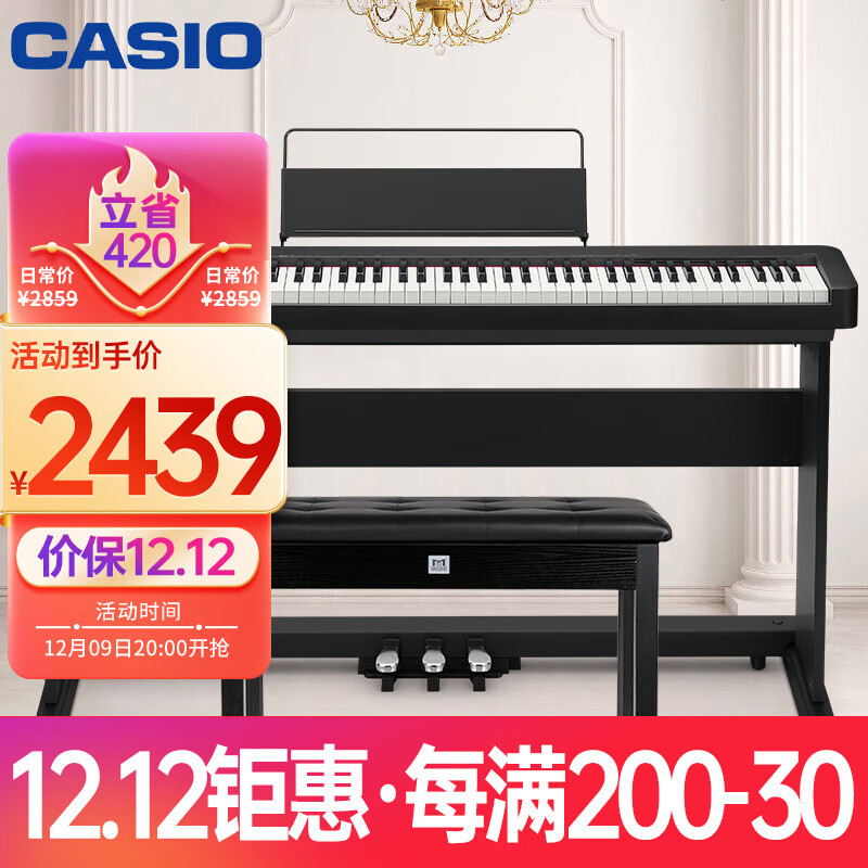 卡西欧(CASIO)电钢琴EP-S130BK电子数码钢琴88键重锤初学黑色单机+木琴架+礼包价格:2829.00元!