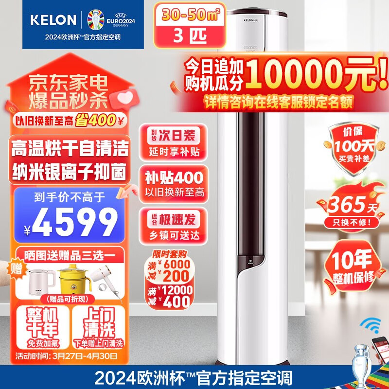 科龙(KELON)空调一级能效立式变频节能高效省电冷暖除湿家用智能wifi柜式圆柱式柔风柜机3匹KFR-72LW/EFLVA1价格:4589.00元!
