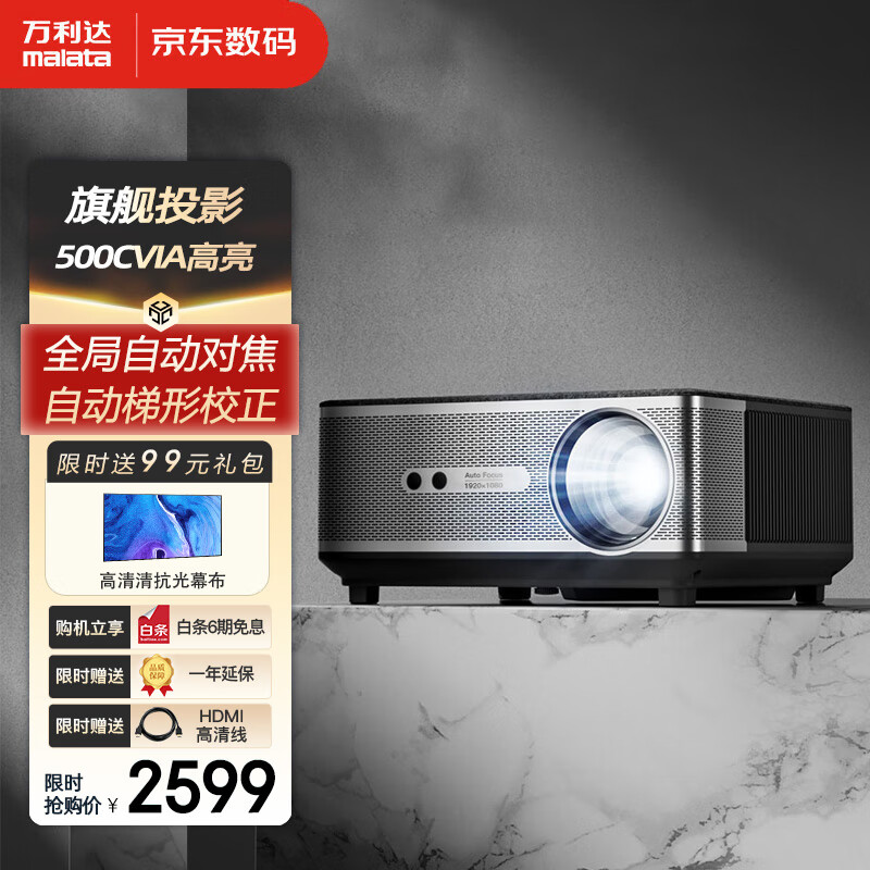 万利达(malata)RD-508 投影仪家用 办公投影机 智能家庭影院电视(全局自动对焦 自动梯形校正 500CVIA)价格:2999.00元!
