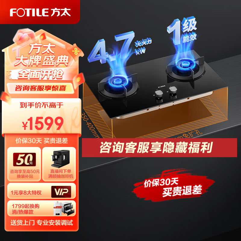 方太燃气灶天然气灶具嵌入式双眼灶具可调节底盘换装优选灶具4.7猛火TH23B天然气价格:1599.00元!