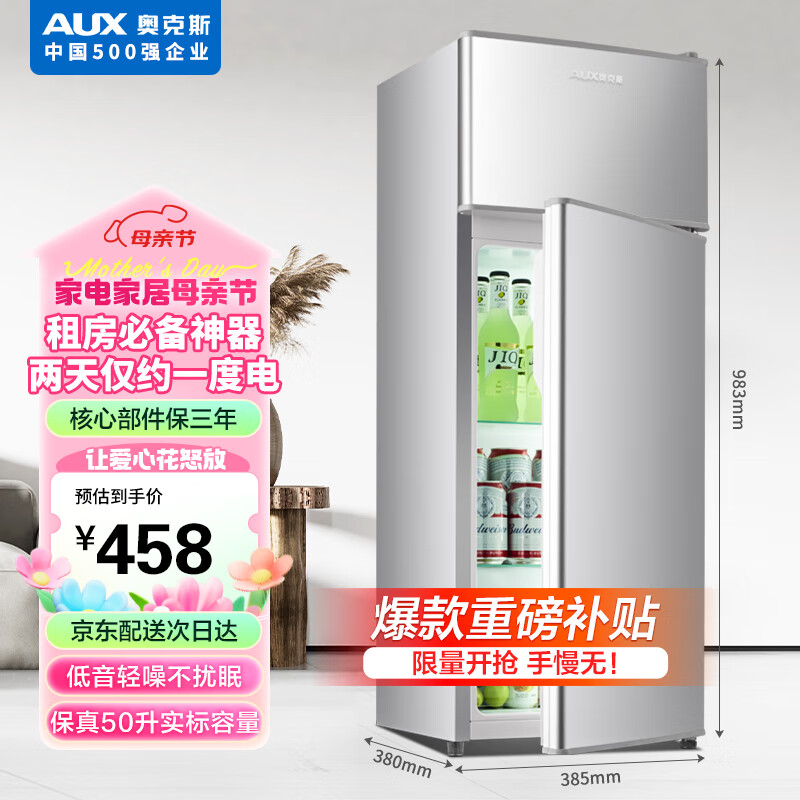 奥克斯(AUX)家用双门迷你小型冷藏冷冻保鲜宿舍租房节能电冰箱 BCD-50K128L价格:458.00元!