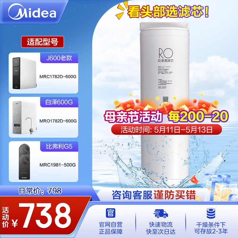 美的净水器滤芯—适用MRC1782D-600G老款 、MRO1782D-600G、MRC1981-500G 净水机-Best双芯系列-RO滤芯价格:798.00元!