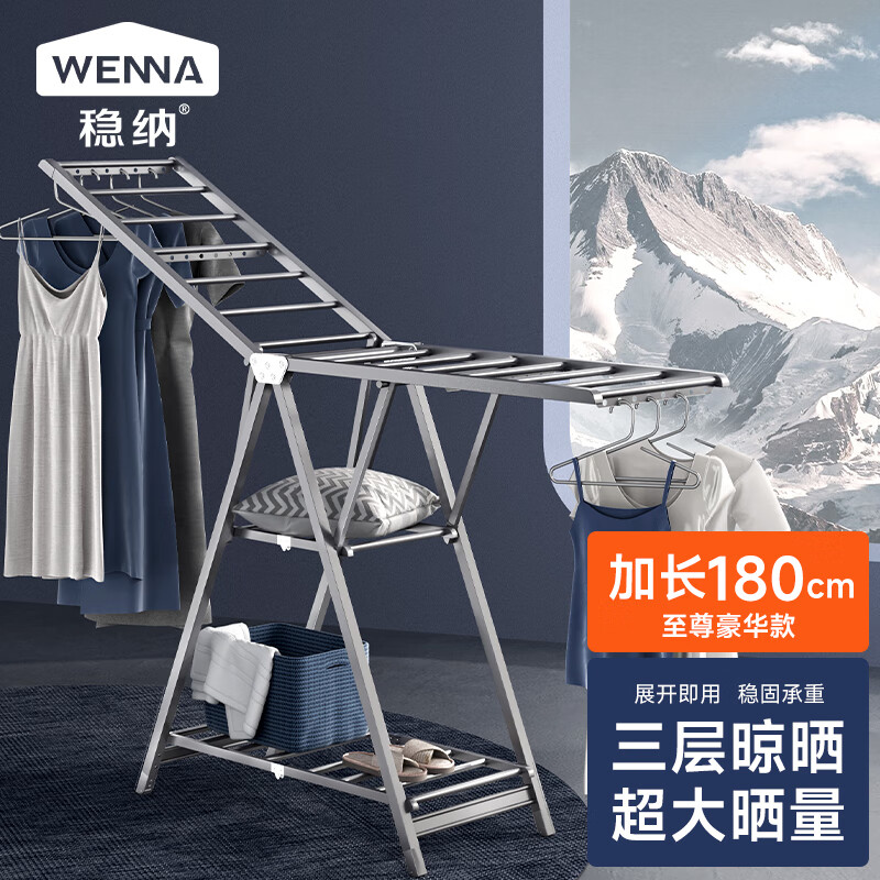 稳纳晾衣架落地铝合金折叠翼型晒衣架阳台晾衣杆凉台凉衣架晒被子价格:499.00元!