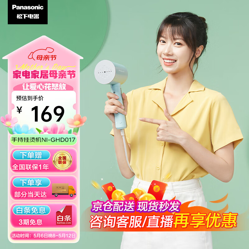 松下(Panasonic)挂烫机家用 熨斗 蒸汽挂烫机 便携 手持挂烫机 电熨斗 NI-GHD017 绿色价格:169.00元!