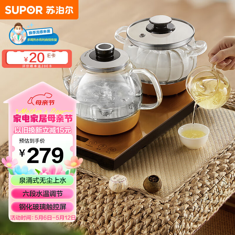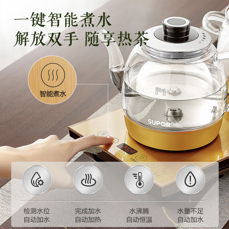 苏泊尔(SUPOR)自动上水壶 煮茶器电茶炉茶台电水壶烧水壶养生套装消毒茶具电热水壶 电茶盘 SW-08C12价格:279.00元!