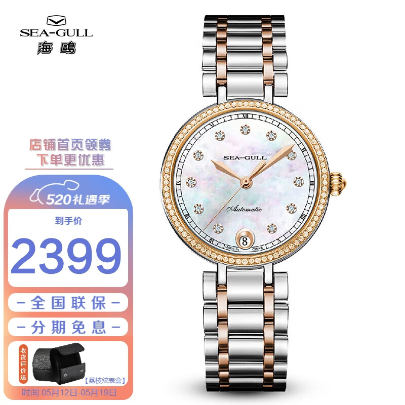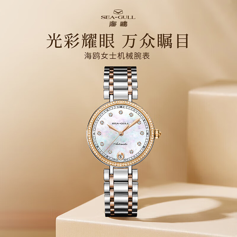 海鸥(SEAGULL)手表女士自动机械表 女表礼物 贝母盘日历女士腕表217.15.1053L价格:2639.00元!