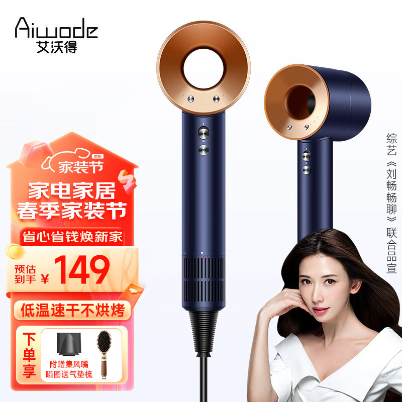艾沃得(Ai wo de)吹风机家用新一代电吹风筒大功率高速吹风机1600W负离子大风力11万转速干低噪音便携无叶 普鲁士蓝 【负离子发廊家用】 普通装价格:148.00元!