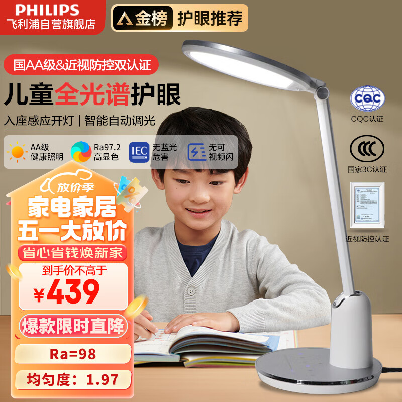 飞利浦(PHILIPS)台灯护眼智能学习全光谱儿童学生国AA级卧室阅读台灯感应轩坦WIZ价格:639.00元!