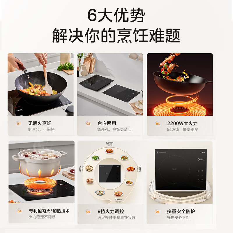 美的(Midea)电磁炉2200W家用大功率电磁灶 智能定时精准控温恒温匀火防刮耐磨台嵌两用 MC-DZ22S03E价格:369.00元!